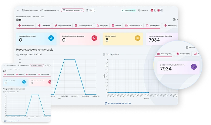 The OPTiBOT platform is a true revolution in online communication. It automates interactions with interlocutors based on artificial intelligence rather than rules, ensuring a smooth and understandable conversation. Without human intervention, the intelligent conversational bot will respond to submitted requests and handle them autonomously, forwarding them to a selected customer service representative only when necessary. Provide support to your consultants and customer service staff now, increasing the speed and quality of service within your organization.