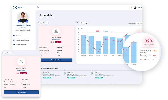 The OPTiDrop App system works with software used at the university, which collects student data from the moment they begin their studies. Based on the collected data, it individually analyzes the situation and, based on established criteria, signals the risk of drop outs, providing information about the threat in the form of clear reports. Based on the obtained statistics, the coordinator can confirm the risk of dropping out and initiate appropriate preventive measures. A key advantage of the system is continuous monitoring of the situation, enabling a reliable assessment of the effects of implemented corrective initiatives.