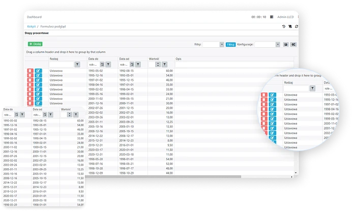 Using a low-code platform, you can build easy-to-maintain and expand web applications. This is achieved without interfering with the ERP system architecture and risking disruption to its functionality. Applications are created without the need to write software code, using ready-to-use components. They are designed visually, allowing you to monitor the results of your work in real time and make changes as needed or as the environment changes. The ready-made components available in the low-code platform can be reused to build many different applications.
