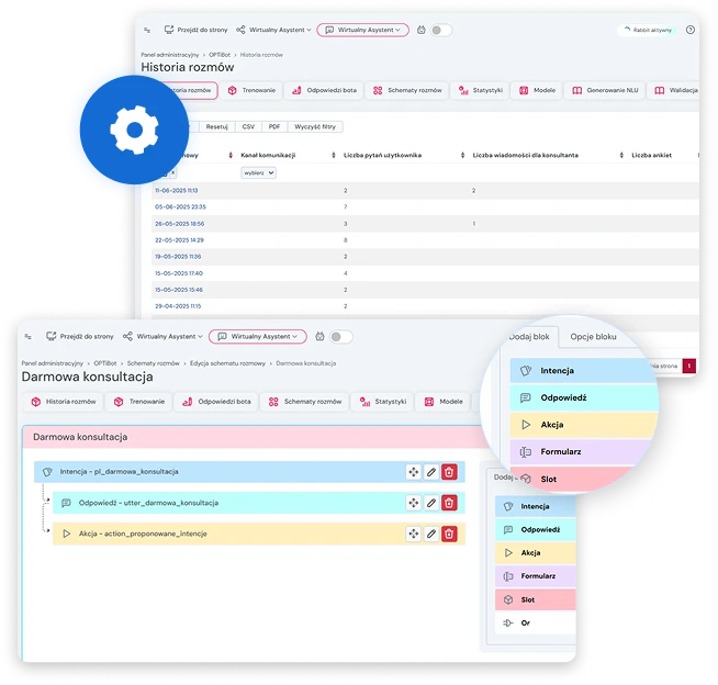 Konwersacja prowadzona za pomocą języka naturalnego, z zachowaniem logicznego ciągu pytań i odpowiedzi.