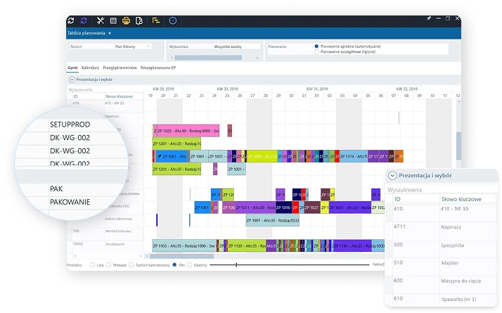 Harmonogramujesz produkcję zleceń i realizację operacji w optymalnej kolejności.