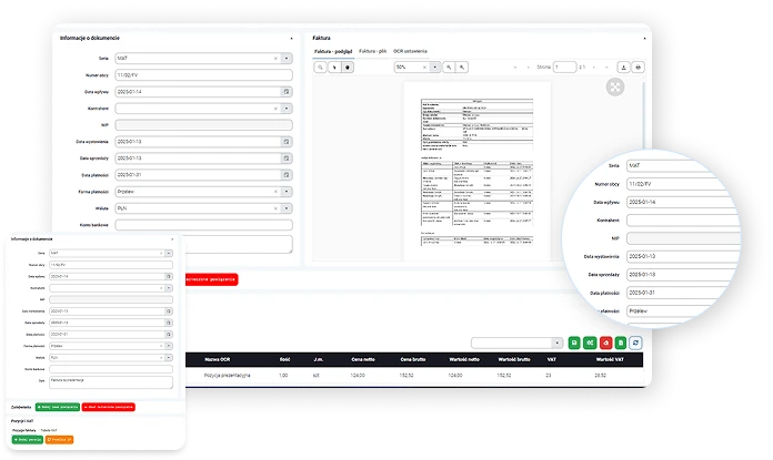 Integracja z OCR umożliwiająca automatyczne sczytywanie danych ze skanowanych dokumentów.