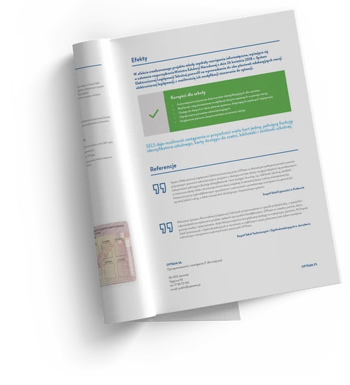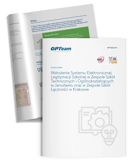 System Elektronicznej Legitymacji Szkolnej stworzony przez OPTeam w dłuższej perspektywie pozwoli znacznie przyspieszyć czynności administracyjne, związane z obsługą uczniów, którzy mogą posługiwać się praktycznymi dokumentami pełniącymi funkcję identyfikatorów i kart dostępu do usług, np.: biblioteki szkolnej, stołówki w internacie szkoły, biletu okresowego komunikacji miejskiej, krakowskiej karty rodziny wielodzietnej itp.
